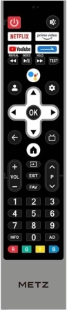 Upravljajte svojim METZ televizorom lako i brzo uz pametni daljinski upravljač s tipkama za streaming servise kao što su Netflix i YouTube.