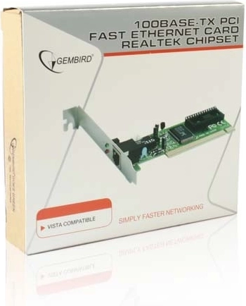 PCI mrežna kartica 10/100 Mb/s s čipsetom Realtek RTL8139C. Full Duplex, autonegocijacija, Wake‑on‑LAN i oklopljeni RJ‑45 za stabilnu i brzu vezu.