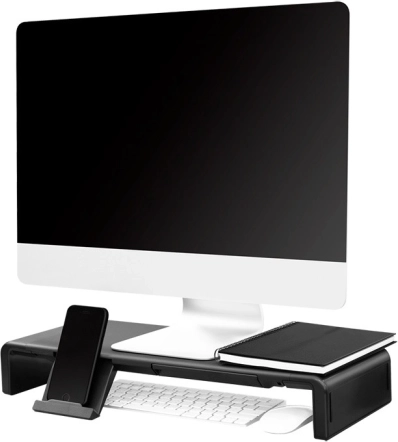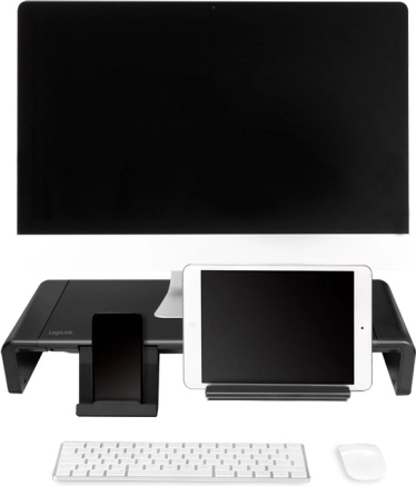 Stvorite udobno i pregledno radno mjesto sa stalkom za monitor s nosivošću do 25 kg. Zahvaljujući sklopivoj konstrukciji lako prilagodite širinu na 420 / 470 / 520 mm. Praktična ladica i integrirani držač za smartphone i tablet održat će vaš stol savršeno urednim, dok ćete tipkovnicu i miš pospremiti ispod robusnog plastično‑metalnog stalka.