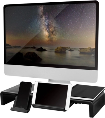 Podignite monitor na ugodnu visinu i pospremite tipkovnicu i miš ispod stalka. Dobit ćete više mjesta i bolje radne navike.