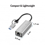 Univerzalni adapter USB‑A/USB‑C na 2,5G Ethernet pretvara vaš uređaj u punokrvni mrežni čvor s brzinom do 2,5 Gb/s. Zahvaljujući dvostrukom sučelju lako ga povežete s novijim i starijim uređajima bez dodatnih adaptera.