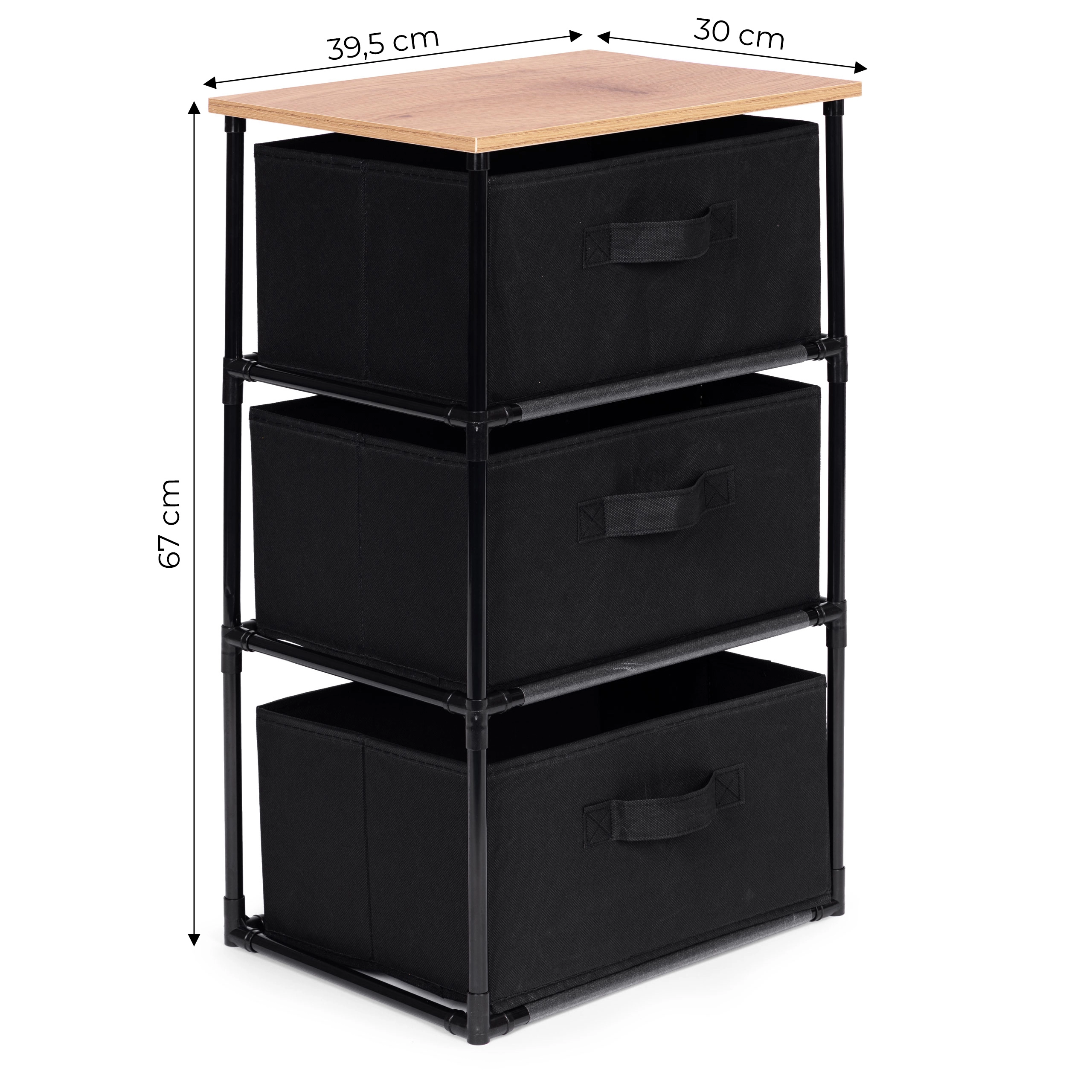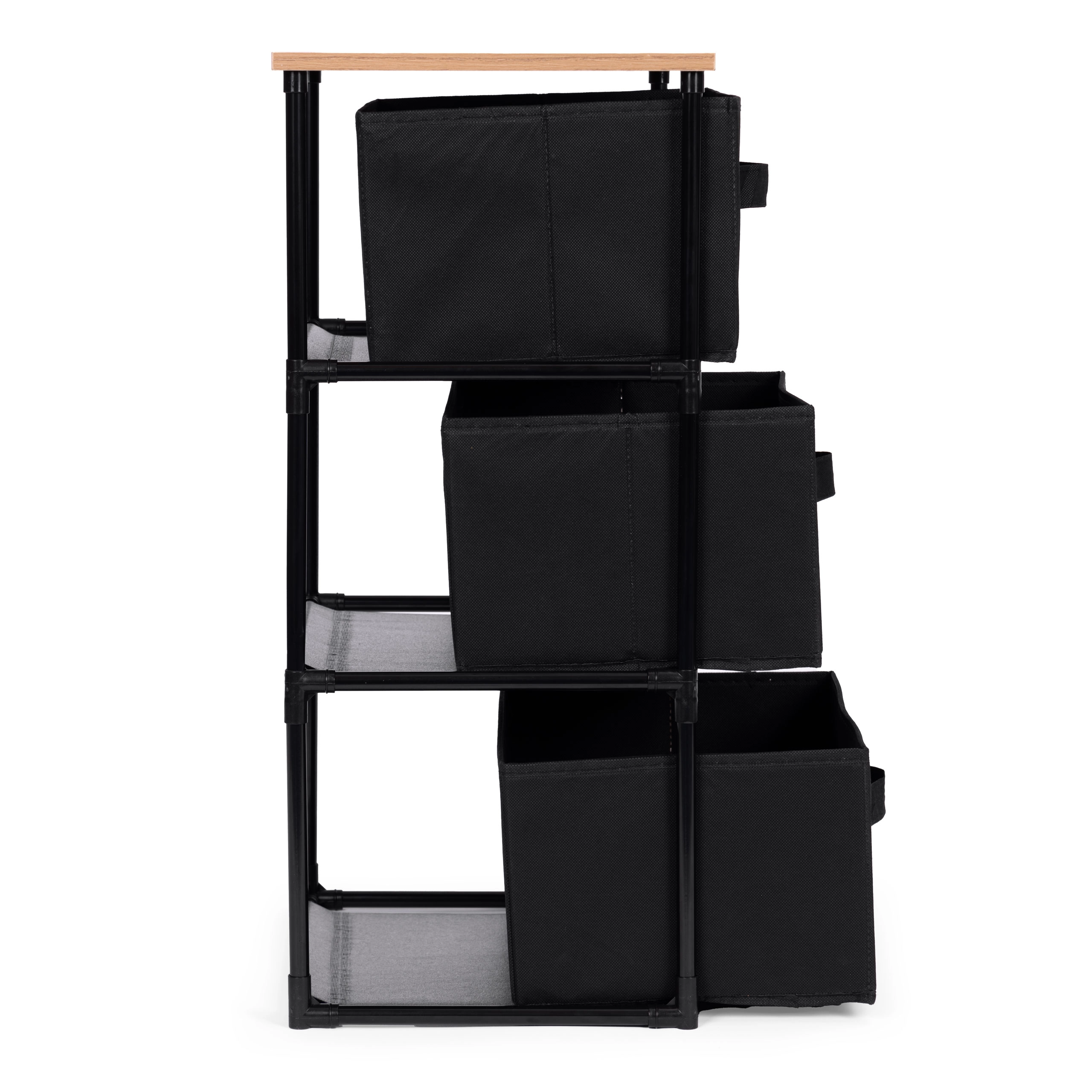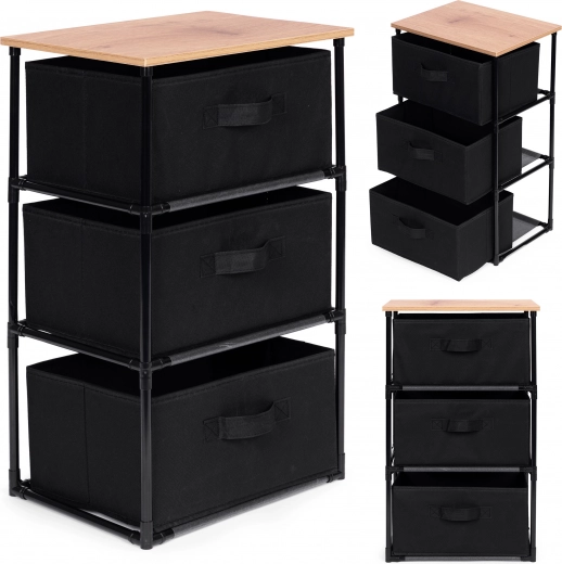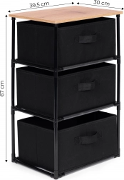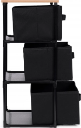 Regal sadrži tri uklonjive košare od izdržljivog tekstila, prikladne za pohranu odjeće, knjiga, igračaka i drugih predmeta, uz lak pristup zahvaljujući praktičnim ručkama.