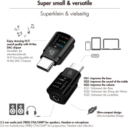 Moderna uređaji često nemaju standardni 3,5 mm audio priključak, ali to s LogiLink USB-C audio adapterom više nije problem. Ovaj adapter jednostavno priključite na USB-C port na vašem pametnom telefonu ili tabletu i 3,5 mm priključak slušalica na adapter. Zahvaljujući DAC dekodiranju i PCM/DSD podršci adapter donosi znatno bolju kvalitetu zvuka i vaša omiljena glazba zvuči još bolje.