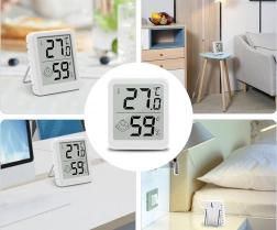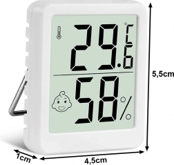 Održavajte zdravo i ugodno unutarnje okruženje s ovim mini termometrom i higrometrom. Velik i čitljiv LCD zaslon prikazuje trenutnu temperaturu i relativnu vlagu, dok smajlić odmah pokazuje jesu li uvjeti optimalni. Uređaj je idealan za spavaću sobu, dječju sobu, ured, staklenik te za skladištenje namirnica.