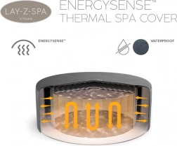 Premium toplinski pokrov Lay‑Z‑Spa EnergySense Plus dizajniran je za maksimalnu učinkovitost i dug vijek trajanja. Troslojni materijal DuraPlus odolijeva UV zračenju i vremenskim uvjetima, dok poboljšani dvostruki izolacijski sloj ubrzava zagrijavanje vode i produžuje vrijeme tijekom kojeg hidromasažna kada zadržava ugodnu temperaturu.