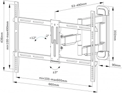 S dubinom od 5,3–49 cm prikladan je za ekrane koji zadovoljavaju VESA zahtjeve od 100x100 do 600x400 mm. Ovaj nosač je idealan za različite prostorije i olakšava optimalno pozicioniranje ekrana.