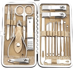 Ovaj univerzalni set nudi sve što trebate za savršeno uređene ruke i noge. Kvalitetni alati od nehrđajućeg čelika osiguravaju čist rez, precizno turpijanje i nježnu njegu kožice. Stilski bež etui drži sve pregledno organizirano i idealan je za prenošenje.