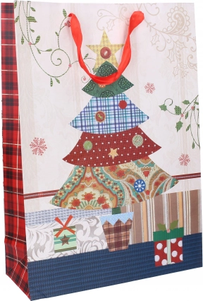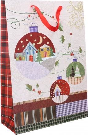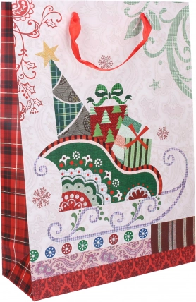 Darovna papirnata vrećica s božićnim motivom idealan je izbor za brzo i estetsko pakiranje darova. Zahvaljujući većim dimenzijama udobno prima glomaznije predmete, a njezina čvrsta izvedba osigurava sigurno prenošenje.
