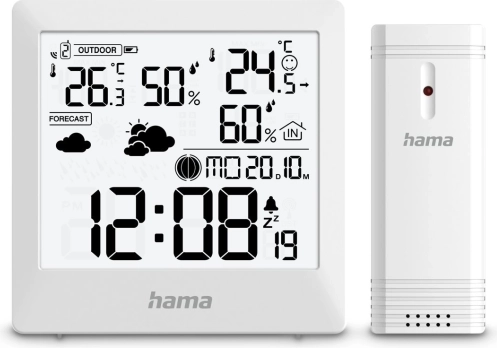 Stilska kućna meteorološka stanica Hama Palawan u bijeloj boji precizno mjeri temperaturu i vlažnost u zatvorenom i na otvorenom, prikazuje prognozu vremena pomoću ikona, mjesečeve mijene te nudi sat, kalendar i budilicu s odgodom (snooze). Zahvaljujući bežičnom senzoru, preglednom LCD-u i prikazu trendova promjena imate uvjete u domu pod kontrolom. Ekološko FSC pakiranje štedi prirodu.