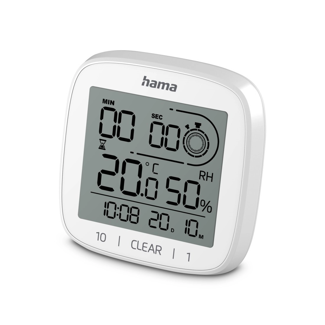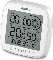 Održavajte pregled u kupaonici i kuhinji. Elektronički sat s funkcijom kalendara prikazuje vrijeme u 12/24 h formatu i datum (dan/mjesec). Ugrađeni termometar i higrometar prate klimu u prostoriji – temperaturu u rasponu 0 do +50 °C i relativnu vlažnost 20–95 %, pa lako sprječavate nastanak plijesni.