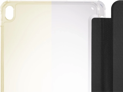 Zahvaljujući prozirnim leđima istaknut će se originalni izgled uređaja. Poklopac nudi funkciju postolja za udobno pisanje i gledanje videa, automatsko uključivanje/isključivanje pri otvaranju i zatvaranju, kao i praktičan držač za stylus. Protuklizna završna obrada i bočni utori osiguravaju siguran hvat, bez neželjenog žućenja materijala.