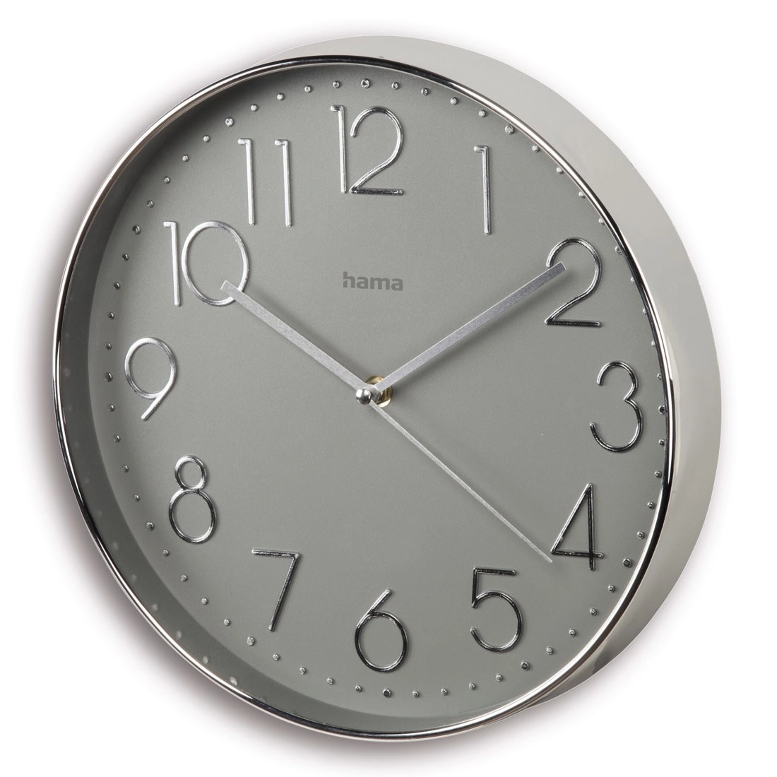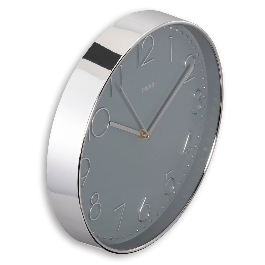Sivi brojčanik promjera 30 cm sa srebrnim okvirom daje bezvremenski izgled. Veliki analogni zaslon s izraženim kazaljkama olakšava čitanje vremena s bilo koje udaljenosti.