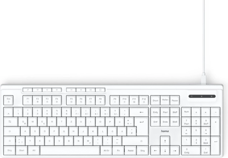 Žičana tipkovnica Hama CK-200 opremljena je tihim tipkama, koje omogućuju miran rad bez ometanja drugih. Idealna je za uredska okruženja. Savitljive nožice nude mogućnost prilagodbe kuta nagiba za udoban položaj ruku tijekom tipkanja.