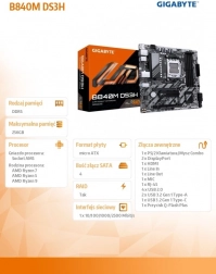 Otkrijte izvrsne performanse s matičnom pločom GIGABYTE B840M DS3H AM5, koja podržava najnovije AMD procesore. S digitalnim VRM rješenjem 8+2+2 faze osigurava stabilno i učinkovito napajanje za vaše komponente. Iskoristite četiri DDR5 utora s podrškom za AMD EXPO memorijske module za brzi i stabilni rad memorije.