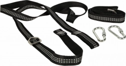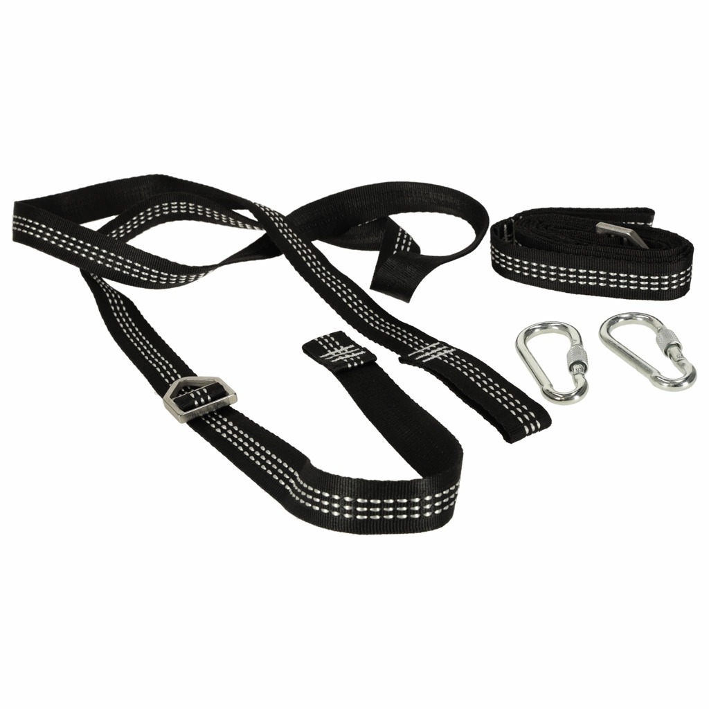 Idealni montažni set za sve ljubitelje ljuljački, bilo da se koristi u vrtu, na terasi ili u interijeru. Set uključuje dvije vrlo izdržljive trake duljine 2 metra i dva karabina s maksimalnom nosivošću od 300 kg. Time je osigurana stabilnost i sigurnost čak i pri intenzivnom korištenju.