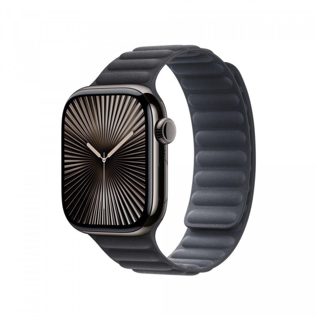 Crni rebrasti magnetski remen, izrađen od FineWoven tkanine, elegantno obavija vaš zapešće. Posebno oblikovani magneti osiguravaju da remen ostaje čvrsto i udobno pričvršćen tijekom cijelog dana.