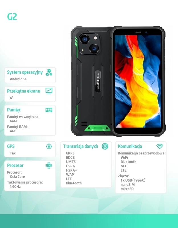 Oukitel je pametni telefon rođen za izazove. S certifikatima IP68, IP69K i standardom MIL-STD-810H vodootporan je, otporan na prašinu i udarce. Zaslon veličine 6 inča HD+ s rezolucijom 1152 x 576 piksela, zaštićen staklom Corning Gorilla Glass 5, pruža svijetlu i oštru sliku.