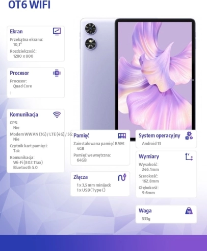 Oukitel tablet donosi moderan dizajn i izvrstan korisnički doživljaj. S 10,1" IPS zaslonom imat ćete sjajan vizualni doživljaj pri gledanju videa, čitanju ili radu. Zahvaljujući četverojezgrenom procesoru Rockchip RK3562 s frekvencijom 2,0 GHz i 4 GB RAM-a uživat ćete u glatkom radu aplikacija i multitaskingu bez zastoja.