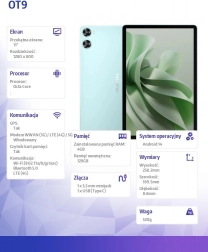 Tablet Oukitel opremljen je osmjezgrenim procesorom Unisoc T606 s taktom od 1,6 GHz i 4 GB RAM-a, što osigurava gladak rad aplikacija i mogućnost multitaskinga. Interna pohrana kapaciteta 128 GB može se proširiti putem microSD kartice do 1 TB, pružajući dovoljno prostora za vaše datoteke i aplikacije.