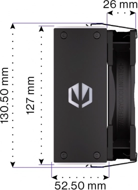 ENDORFY Fera 5 Black ARGB je kompaktan i snažan zračni hladnjak, razvijen u suradnji sa Synergy Cooling za najbolji omjer performanse/buka. Gusta rebra, asimetrični pasiv i četiri bakrene heatpipe cijevi s izravnim dodirom IHS‑a procesora učinkovito odvode toplinu i pri visokom opterećenju, dok optimiziran jednosmjerni protok zraka povećava učinkovitost hlađenja.