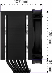 Fortis 5 Black je robustan CPU hladnjak dizajniran za maksimalnu učinkovitost i minimalnu buku. Gusto rebrasti aluminijski pasiv spojen na šest bakrenih heatpipe cijevi izvrsno odvodi toplinu s procesora. Optimizacija za jednosmjeran protok zraka osigurava vrhunske performanse u svojoj klasi i stabilne temperature i pri dugotrajnom opterećenju.
