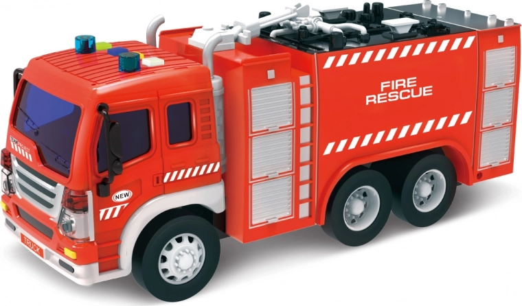 Vatrogasno vozilo sa štrcaljkom nudi sjajnu zabavu za djecu. S realističnim svjetlosnim i zvučnim efektima te jednostavnim upravljanjem na inerciju, djeca će uživati u satima igre.