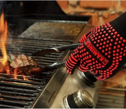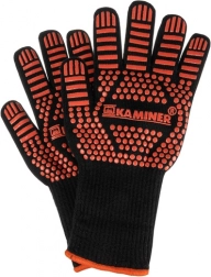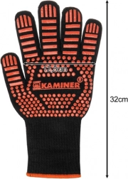 Ove vatrootporne rukavice KAMINER dizajnirane su za rukovanje vrućim posudama, rešetkama i limovima za pečenje. Čvrsta višeslojna konstrukcija s dodatkom preoksidiranog vlakna i silikonskim protuklizom osigurava siguran hvat i kratkotrajnu zaštitu od visokih temperatura pri kuhanju i roštiljanju.