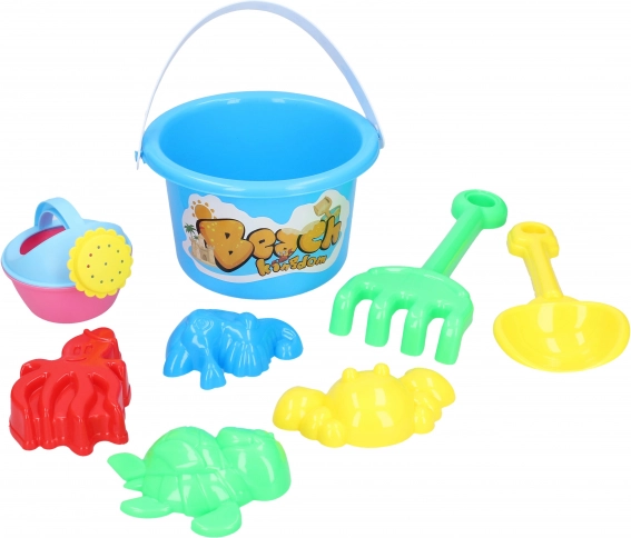 Šareni set za pijesak s 8 dijelova razveselit će svakog malog graditelja. Sadrži sve potrebno za igru u pješčaniku i uz vodu – od kantice do kalupa. Zahvaljujući laganim i sigurnim dijelovima idealan je za djecu od 3 godine. Kompletna oprema, jednostavna uporaba i zabava u pješčaniku i u vrtu.