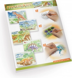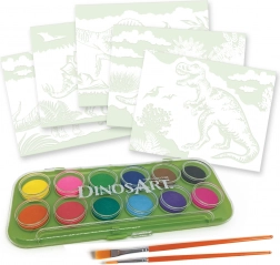 Čarobni akvarel set DinosArt donosi djeci sate kreativne zabave. Zahvaljujući posebnim čarobnim pločama, motivi dinosaura postupno se otkrivaju tijekom rada s vodom i bojama, što potiče maštu i finu motoriku. Kompletan set prikladan je i za početnike i za naprednije male slikare.