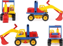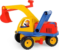 Ovaj čvrsti plastični bager razveselit će svakog malog graditelja. Zahvaljujući okretnom gornjem dijelu i lako upravljivoj ruci s lopatom, djeca se mogu uživjeti u realističnu igru na gradilištu. Uključena figurica vozača potiče maštu i razvoj motorike.