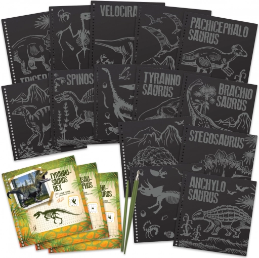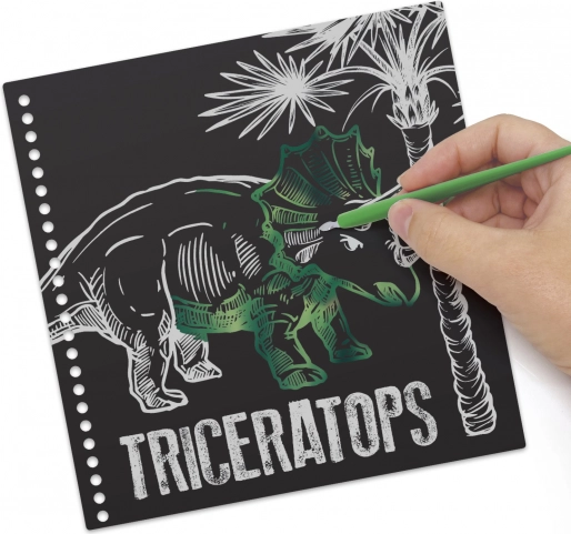 Pronađite čaroliju fantastičnih motiva s dnevnikom za grebanje DinosArt. Svaka stranica nudi umjetničko platno spremno za kreativnost.
