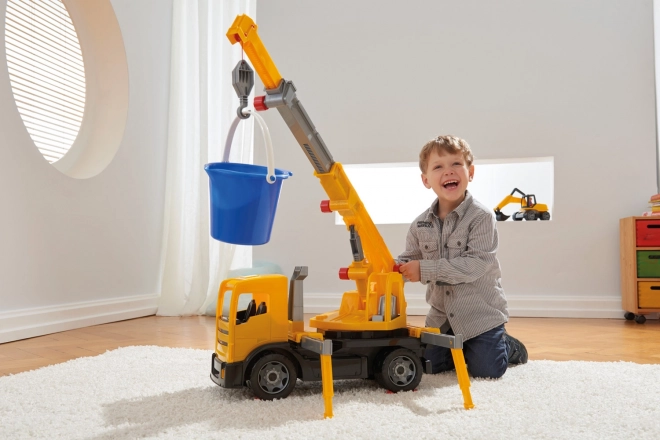 Mehanički kotačići za izvlačenje i podizanje kraka te vitlo s užetom donose autentičnu gradilišnu zabavu i potiču razvoj motorike.