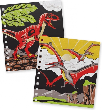 - 12 baršunastih ploča s motivima dinosaura – kontrastni crni baršun naglašava boje