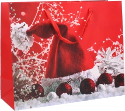 Stilska božićna darovna vrećica veličine M idealna je za elegantno pakiranje blagdanskih iznenađenja. Praktične dimenzije 26 × 32 × 10 cm primaju knjige, kozmetiku i manje poklone. Odaberite zimski motiv i uživajte u brzom i lakom pakiranju bez rezanja i lijepljenja. Vrećica je od kvalitetnog čvrstog papira i prikladna je za svaku božićnu prigodu.