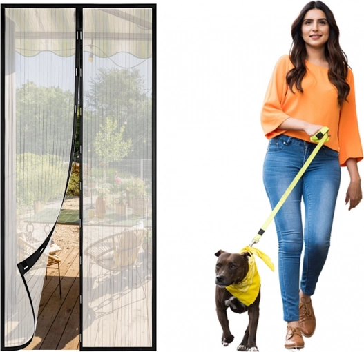 Brza montaža i udobna upotreba – mreža se postavlja pomoću čičak traka, pa je instalirate bez alata. Središnji dijelovi se automatski spajaju magnetima, što omogućuje udoban prolaz na balkon ili terasu i kada su vam ruke pune.