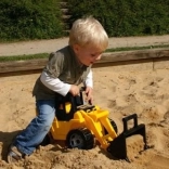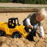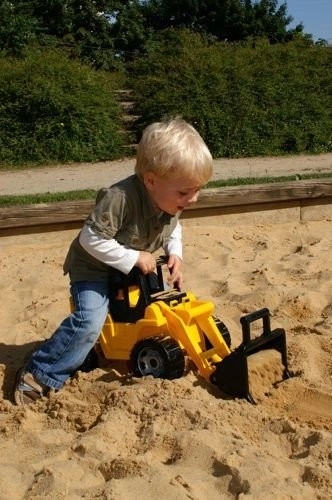 Dječji utovarivač Lena u crno-žutoj izvedbi od visokokvalitetne plastike koja zadovoljava europske standarde. Opremljen je pokretnom rukom s kašikom za utovarivanje što pruža sjajnu zabavu za djecu.
