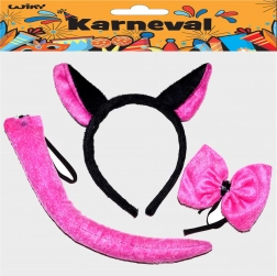 U setu se nalazi sve što trebate: obruč s mačjim ušima, elegantna mašnica za vrat i usklađeni rep. Dodatke lako kombinirajte s crnom majicom i tajicama – gotovo za par minuta.