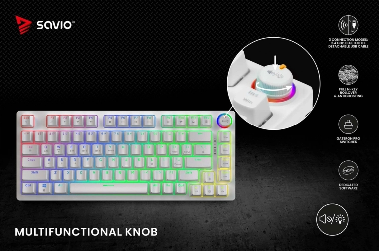 S kompaktnim dizajnom bez numeričke tipkovnice i multifunkcionalnim kotačićem u desnom gornjem kutu, PHENIX WHITE je idealan izbor za organizirano radno i gaming okruženje.