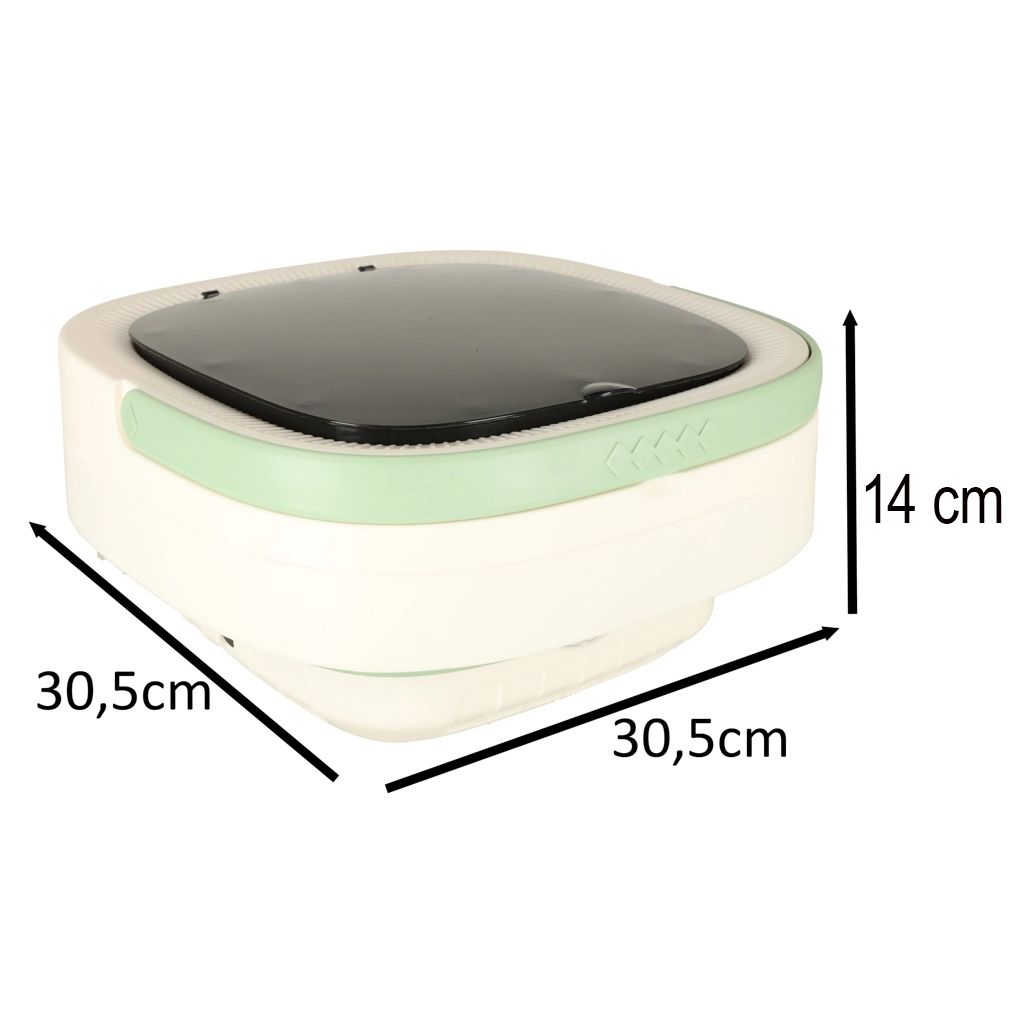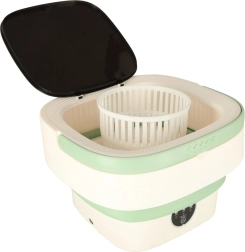 S ovom prijenosnom perilicom oprat ćete majice, donje rublje ili dječju odjeću bilo gdje – dovoljne su voda i struja od 12 V. Silikonsko sklopivo tijelo štedi prostor, pa bez problema stane u kofer ili ruksak, a praktična ručka osigurava ugodno nošenje.