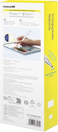Elegantni magnetski stylus BASEUS Smooth Writing III 3 u 1 kombinira preciznost, svestranost i izdržljivost. Nudi 3 zamjenjiva vrha (disk za crtanje, vlaknasti vrh za navigaciju, kemijska olovka za papir), bez potrebe za punjenjem i magnetsko pričvršćivanje na uređaj za maksimalnu udobnost.
