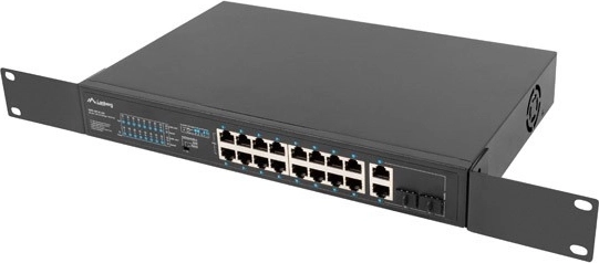 neupravljani poe+ preklopnik 16× fast ethernet s 2× combo gigabit uplinkom, 250 w, rack 19″ lanberg