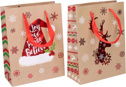 Stilska božićna poklon-vrećica veličine S olakšava pakiranje i daje vašim iznenađenjima blagdanski ugođaj. Idealna za manje darove, s čvrstim ručkama i kvalitetnim papirom za brzo i elegantno pakiranje te reprezentativan izgled.