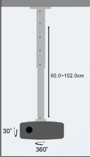 Univerzalna stropna konzola za projektore s jednostavnom prilagodbom duljine 60–102 cm i nosivošću do 15 kg. Zahvaljujući izdržljivoj aluminijskoj konstrukciji, podesivom nagibu i zakretanju te integriranom vođenju kabela, idealna je za dom, ured i komercijalne instalacije.