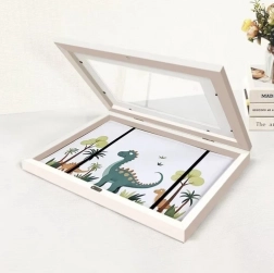 Prednju stranu jednostavno otvorite, umetnete novi crtež i zatvorite magnetskim zatvaračem – bez skidanja okvira sa zida.