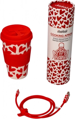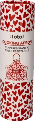 Stilna kuhinjska pregača u praktičnoj tubi s romantičnim motivom srca. Nudi pouzdanú zaštitu odjeće, jednostavna je za održavanje i zahvaljujući prostranom džepu pruža praktičan prostor za odlaganje sitnih kuhinjskih pomagala.