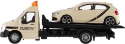 Ovaj model vučnog vozila s osobnim automobilom donosi djelić pravog svijeta u dječju sobu. Precizne proporcije u mjerilu 1:43, kombinacija metala i plastike te upečatljive varijante boja jamče atraktivan izgled i izdržljivost pri igri.