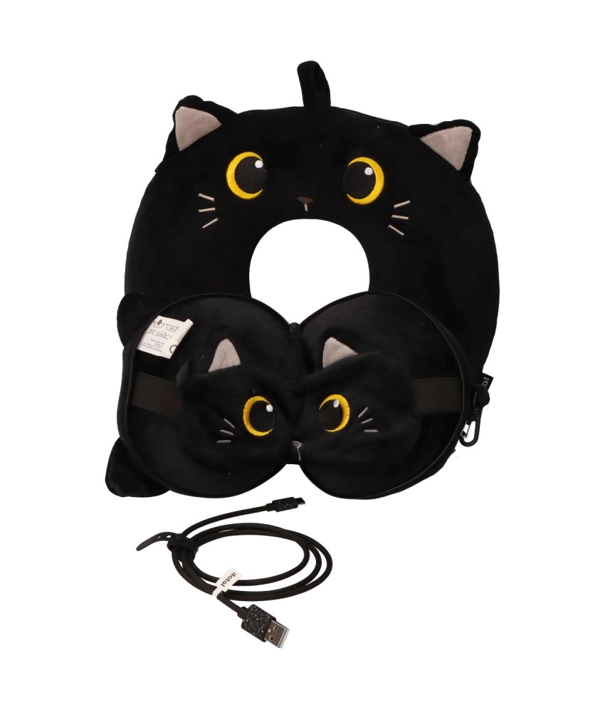Stilski i funkcionalan putni jastučić u obliku simpatične crne mačke idealan je za avion, auto i vlak. U‑oblik nježno obujmi vrat i pomaže održati pravilan položaj glave, pa ćete se na putu doista odmoriti. Baršunasto mekan površinski materijal ugodan je na dodir, a navlaka se lako skida i pere.
