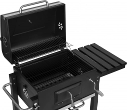 Ovaj vrtni roštilj s poklopcem stvoren je za obiteljska slavlja i večernje barbecue s prijateljima. Poklopac s integriranim termometrom pomaže održati stabilnu temperaturu i pripremiti sočne odreske, burgere i povrće s savršenim dimljenim okusom. Podesiva visina ložišne rešetke pomoću zakretnog kotačića daje vam preciznu kontrolu nad žarom.