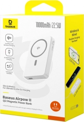 Opremljena velikim kapacitetom od 10 000 mAh, Baseus Airpow II omogućuje više punih punjenja telefona ili drugih uređaja. Ova power banka nudi i bežično i kabelsko punjenje snagom do 22,5 W, što skraćuje vrijeme punjenja i omogućuje upotrebu za različite vrste uređaja, uključujući Android i iOS.