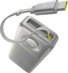 Integrirani, uvlačivi USB‑C kabel štedi prostor u torbi i vrijeme. Nema više traženja kabela – samo izvucite i punite, i to paralelno s drugim USB‑C priključkom.